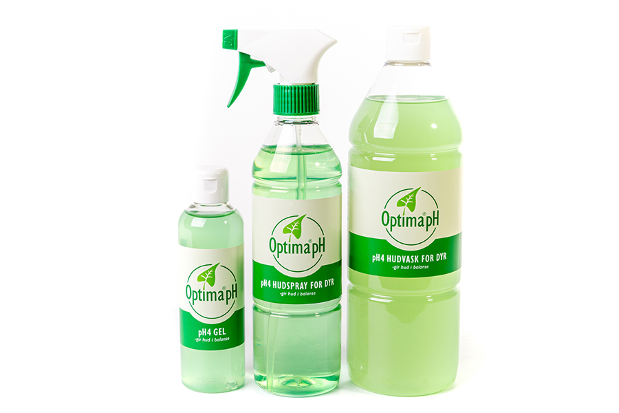 Vask bogsåret med Optima pH hudvask for dyr hvis det er forurensa og påfør så rikeleg med Optima pH gel; helst 2 g pr dag. Start med gelen når du ser det første tegnet til unormal hud på den aktuelle plassen.